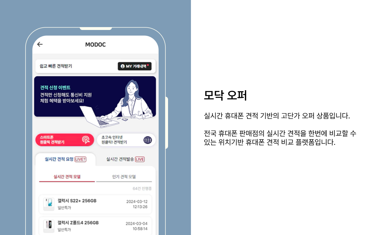 실시간 휴대폰 견적 기반의 고단가 오퍼 상품입니다.